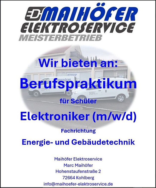 Dann schnuppere Praxisluft bei Maihöfer Elektroservice in Kohlberg!